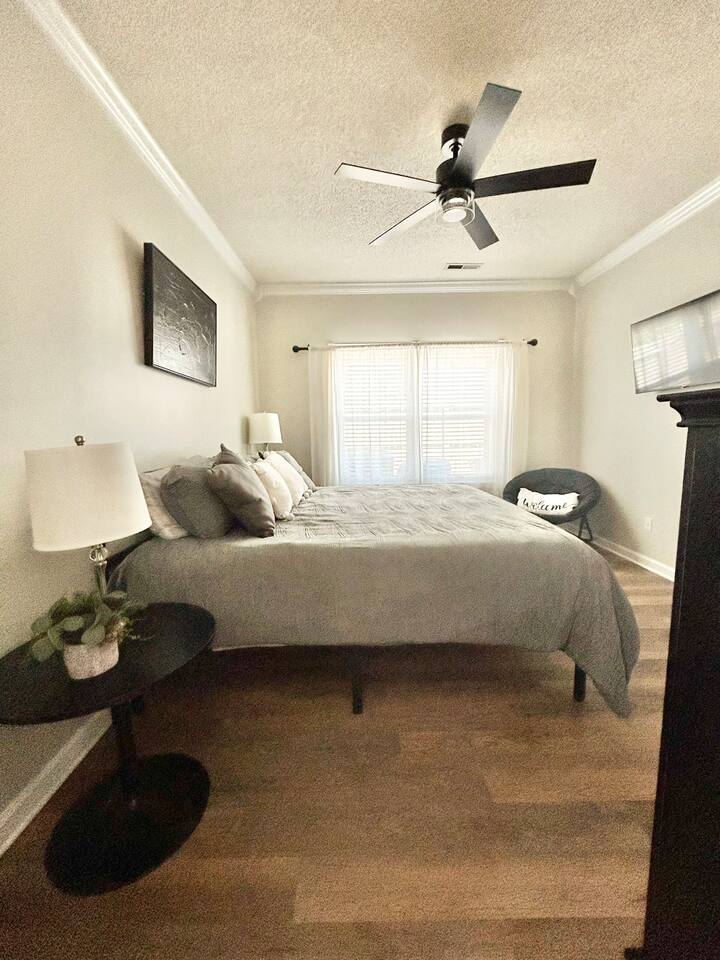 Whatever brings you to Huntsville, this home truly has it all! Equipped with all the essentials you need to feel comfortable right away, it also offers quick and convenient access to many local attractions, making it easy to get wherever you need to be. Whether you’re looking to unwind after a long day or enjoy some fresh air, this home is ideal for both indoor and outdoor relaxation. The open floor plan creates a welcoming and spacious environment, while the private yard offers a tranquil spot to reconnect. Perfect for exploring the city, working remotely, or simply taking some time to relax, this cozy and smart home is centrally located in a safe and quiet community. You’re just minutes away from the Airport, Redstone Arsenal, the Space and Rocket Center, Mid City, Midtown, Bridge Street restaurants, shops, Huntsville/Madison hospitals and much more that the Tennessee Valley has to offer. Inside, you’ll find everything you need for a comfortable stay: * Free Wi-Fi * Smart TVs in every room with access to personal streaming services * Dedicated office space * Fenced-in yard for privacy * Outdoor amenities, including furnishings and games * Walk-up shower in the master bath * Indoor board games and puzzles * Pets welcome on a case-by-case basis * Memory foam beds for a great night’s sleep * Fully stocked kitchen and bathrooms with quality amenities With its prime location, hop on Madison Pike for quick access to University Avenue (Route 72) and Route 565 to reach your destination in no time. Book your stay today and experience all the comfort, convenience, and charm this duplex has to offer!