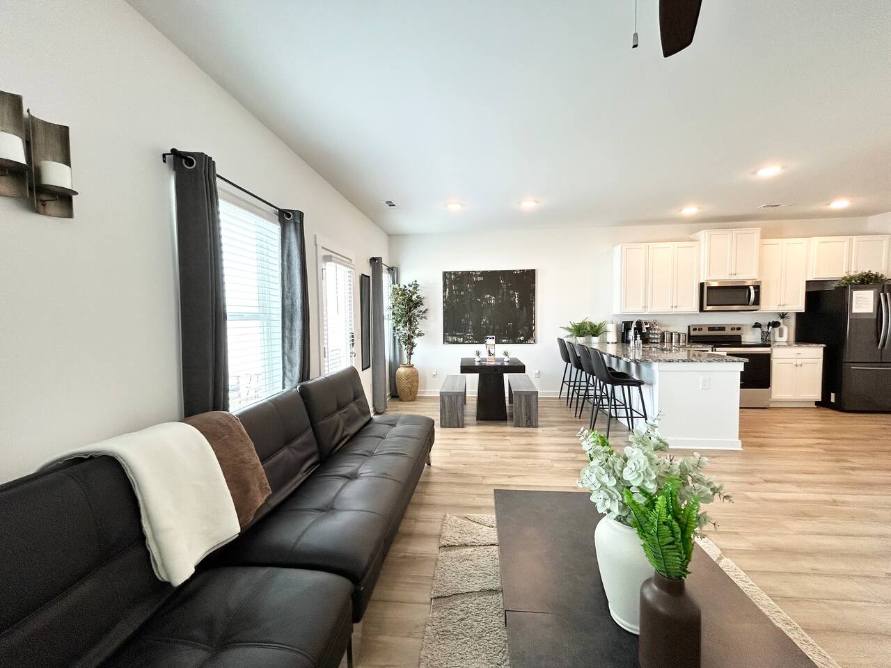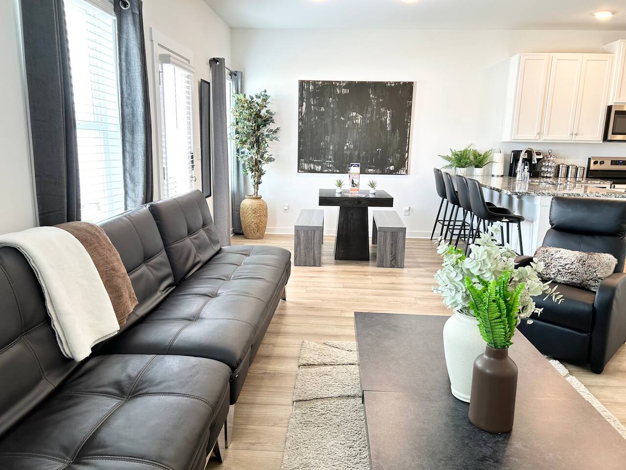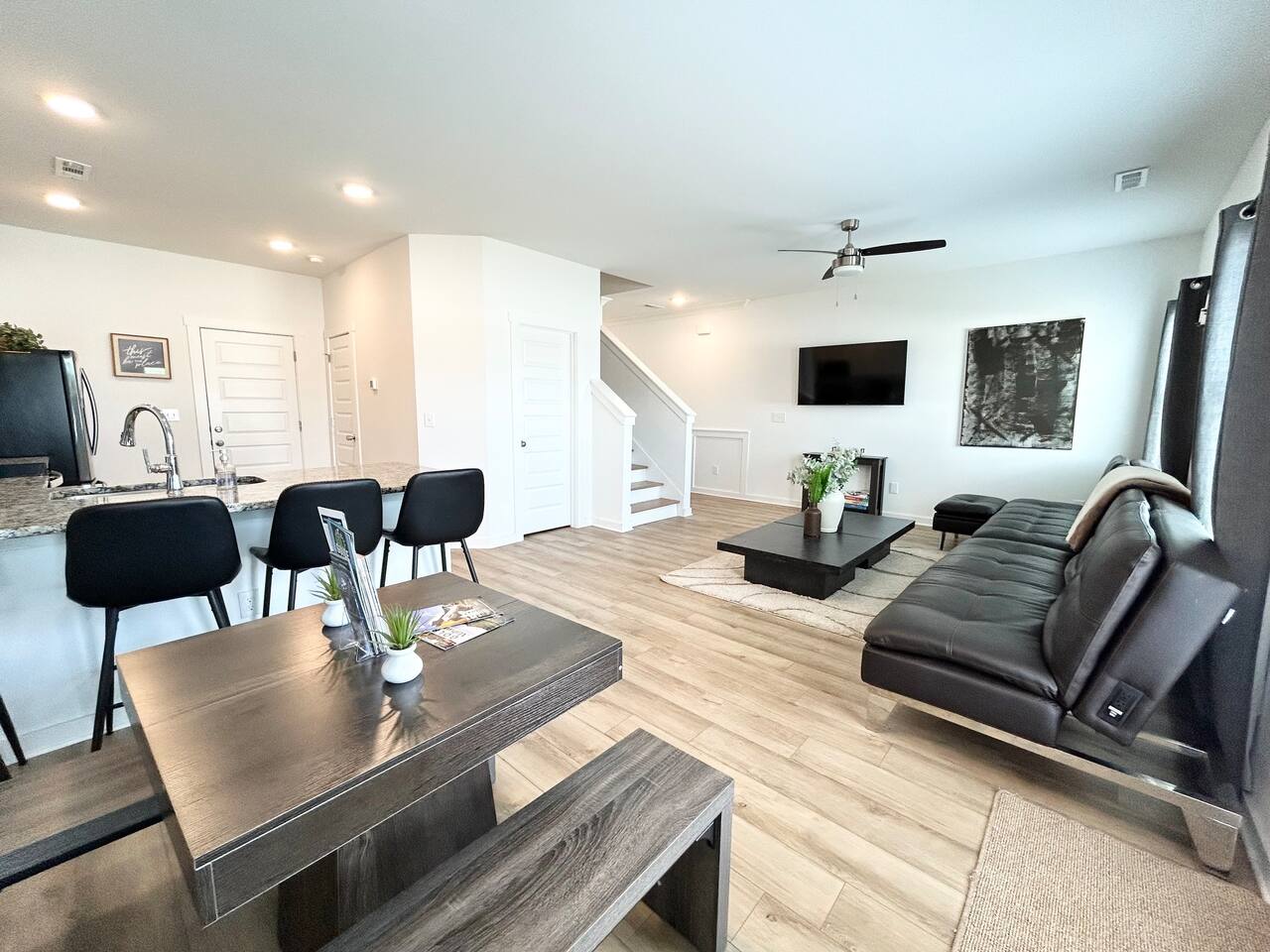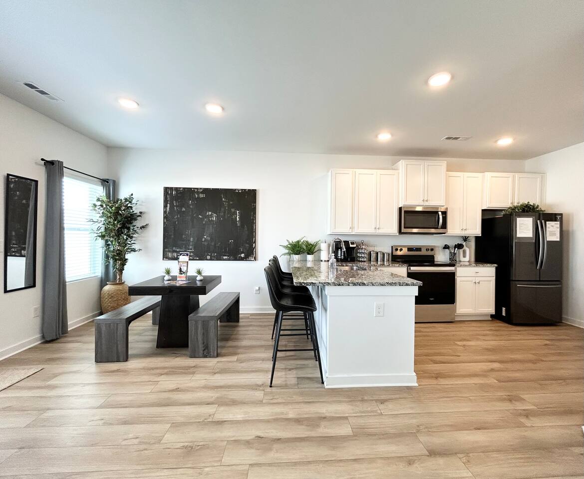 Description This comfortable and modern smart home is situated in a safe, quiet, and family-oriented community, making it the perfect place for you to relax and unwind. Whether you choose to kick back indoors or enjoy the fresh air outside, this beautiful home offers the ideal setting to make your stay truly memorable. The spacious open floor plan and private yard are designed to provide all the comforts of home, whether you’re heading out to explore or opting for a cozy night in. With easy and convenient access to Interstate 255, you’ll find yourself just minutes away from the Huntsville Airport, Redstone Arsenal, Downtown Huntsville, the Space and Rocket Center, Mid City, Midtown, Bridge Street restaurants and shops, Huntsville/Madison hospitals and nearly everything else the Tennessee Valley has to offer! The property is fully equipped with everything you need to feel right at home the moment you walk in, as well as easy access to help you get wherever you need to go. Here’s what you’ll enjoy during your stay: - Relaxing and stylish home furnishings designed for comfort - Free high-speed Wi-Fi - Smart TVs with access to your favorite personal streaming services - A private yard with comfortable outdoor seating - Fun indoor activities including board games and puzzles - Memory foam beds for restful sleep - A fully stocked kitchen and bathrooms with quality amenities (too many to list!) - Plenty of hangers and closet storage for your belongings - Pets considered on a case-by-case basis - Free parking for your convenience Book your stay today and experience all the comfort, charm, and convenience this townhome has to offer!