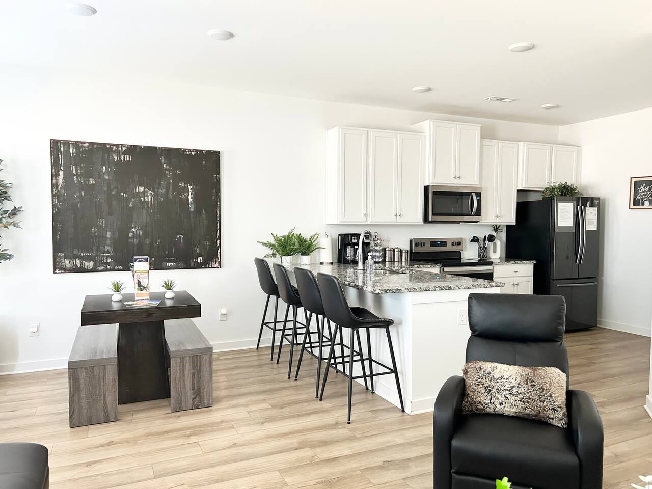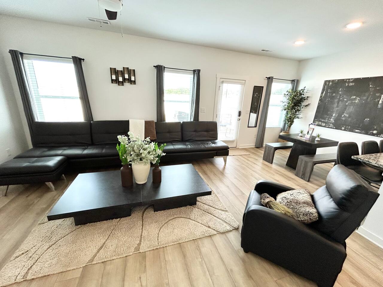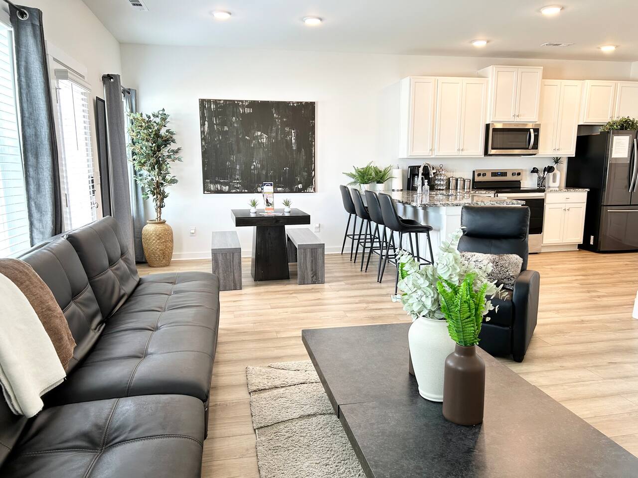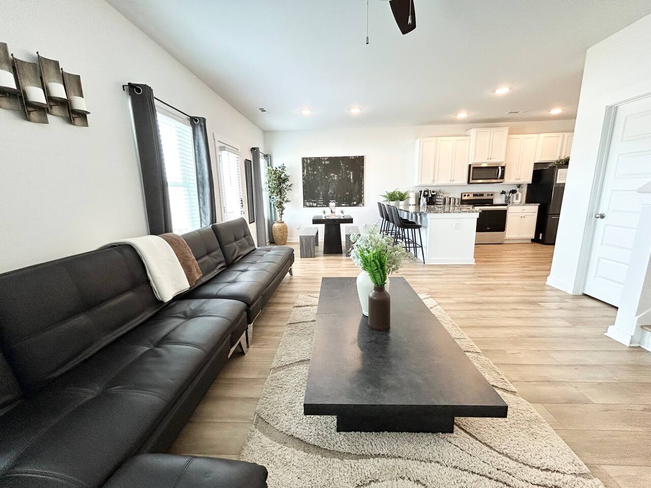 Description This comfortable and modern smart home is situated in a safe, quiet, and family-oriented community, making it the perfect place for you to relax and unwind. Whether you choose to kick back indoors or enjoy the fresh air outside, this beautiful home offers the ideal setting to make your stay truly memorable. The spacious open floor plan and private yard are designed to provide all the comforts of home, whether you’re heading out to explore or opting for a cozy night in. With easy and convenient access to Interstate 255, you’ll find yourself just minutes away from the Huntsville Airport, Redstone Arsenal, Downtown Huntsville, the Space and Rocket Center, Mid City, Midtown, Bridge Street restaurants and shops, Huntsville/Madison hospitals and nearly everything else the Tennessee Valley has to offer! The property is fully equipped with everything you need to feel right at home the moment you walk in, as well as easy access to help you get wherever you need to go. Here’s what you’ll enjoy during your stay: - Relaxing and stylish home furnishings designed for comfort - Free high-speed Wi-Fi - Smart TVs with access to your favorite personal streaming services - A private yard with comfortable outdoor seating - Fun indoor activities including board games and puzzles - Memory foam beds for restful sleep - A fully stocked kitchen and bathrooms with quality amenities (too many to list!) - Plenty of hangers and closet storage for your belongings - Pets considered on a case-by-case basis - Free parking for your convenience Book your stay today and experience all the comfort, charm, and convenience this townhome has to offer!