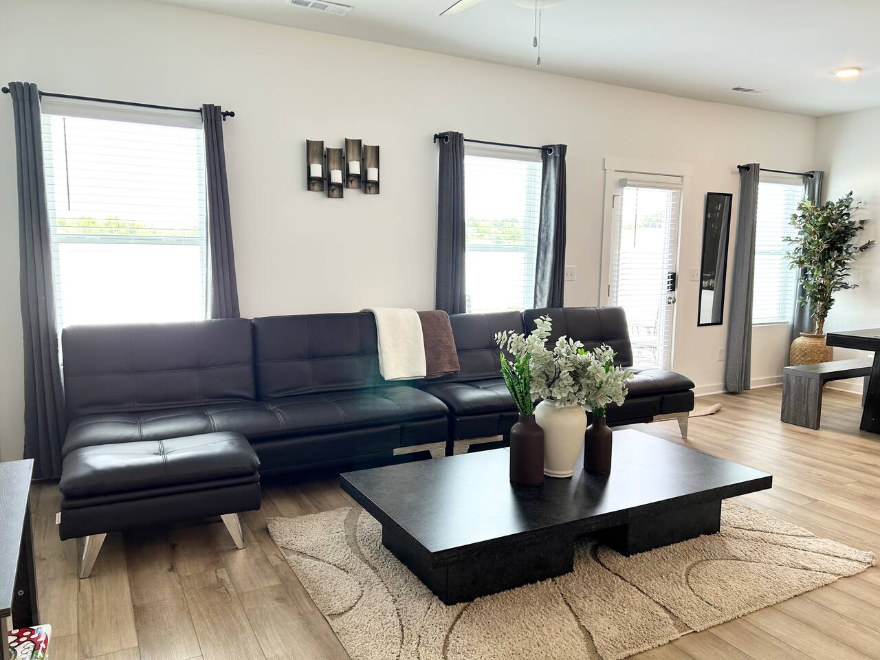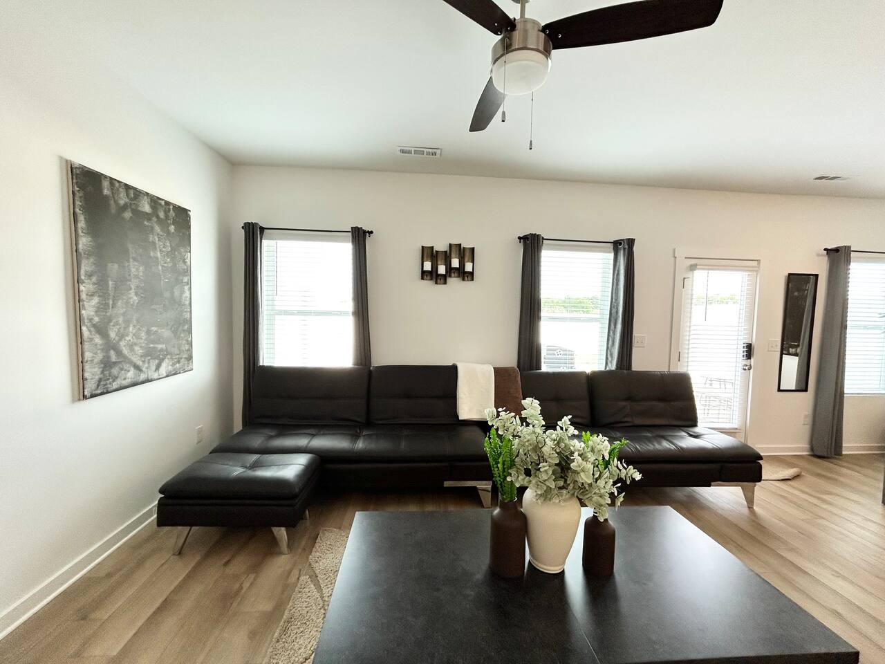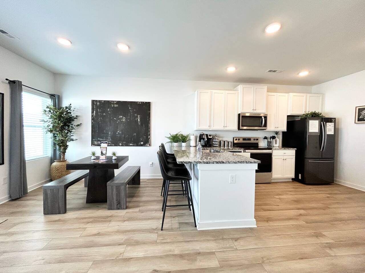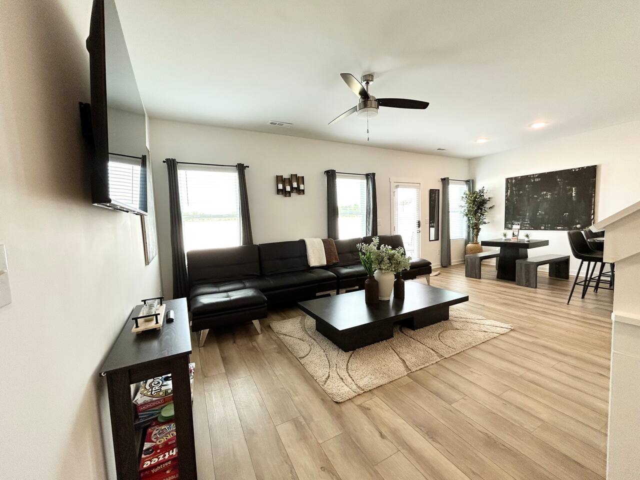 Description This comfortable and modern smart home is situated in a safe, quiet, and family-oriented community, making it the perfect place for you to relax and unwind. Whether you choose to kick back indoors or enjoy the fresh air outside, this beautiful home offers the ideal setting to make your stay truly memorable. The spacious open floor plan and private yard are designed to provide all the comforts of home, whether you’re heading out to explore or opting for a cozy night in. With easy and convenient access to Interstate 255, you’ll find yourself just minutes away from the Huntsville Airport, Redstone Arsenal, Downtown Huntsville, the Space and Rocket Center, Mid City, Midtown, Bridge Street restaurants and shops, Huntsville/Madison hospitals and nearly everything else the Tennessee Valley has to offer! The property is fully equipped with everything you need to feel right at home the moment you walk in, as well as easy access to help you get wherever you need to go. Here’s what you’ll enjoy during your stay: - Relaxing and stylish home furnishings designed for comfort - Free high-speed Wi-Fi - Smart TVs with access to your favorite personal streaming services - A private yard with comfortable outdoor seating - Fun indoor activities including board games and puzzles - Memory foam beds for restful sleep - A fully stocked kitchen and bathrooms with quality amenities (too many to list!) - Plenty of hangers and closet storage for your belongings - Pets considered on a case-by-case basis - Free parking for your convenience Book your stay today and experience all the comfort, charm, and convenience this townhome has to offer!