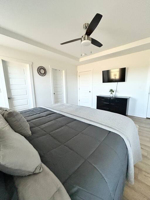 Welcome to this brand-new, comfortable, and modern smart townhome located at Discovery Point in Huntsville! This beautiful property offers three spacious bedrooms featuring 2 king and 1 double bed to ensure everyone in your group enjoys a restful night’s sleep. With three fully equipped bathrooms, freshening up is simple and convenient. The stunning interior design and thoughtfully curated modern amenities create a stylish and relaxing space for you to enjoy throughout your stay
