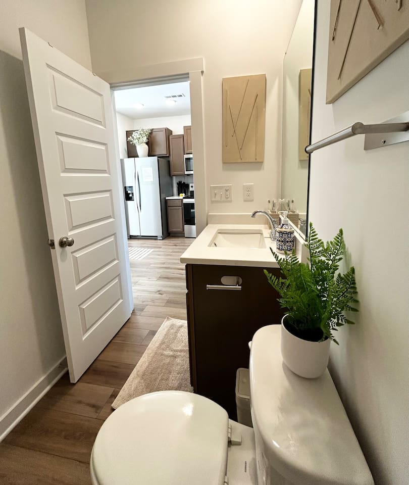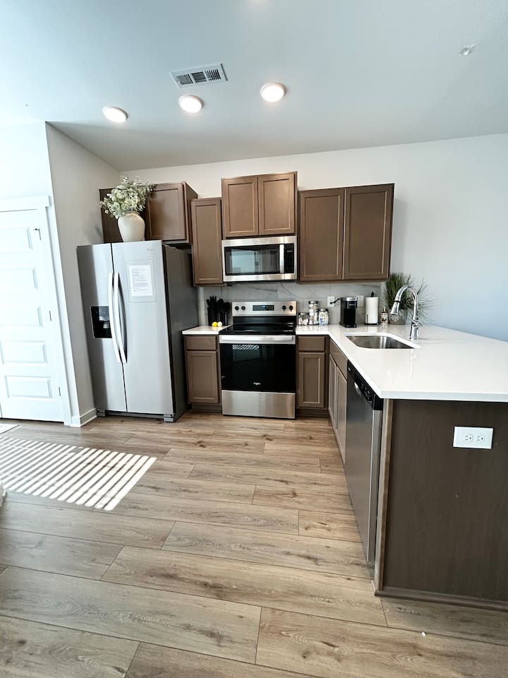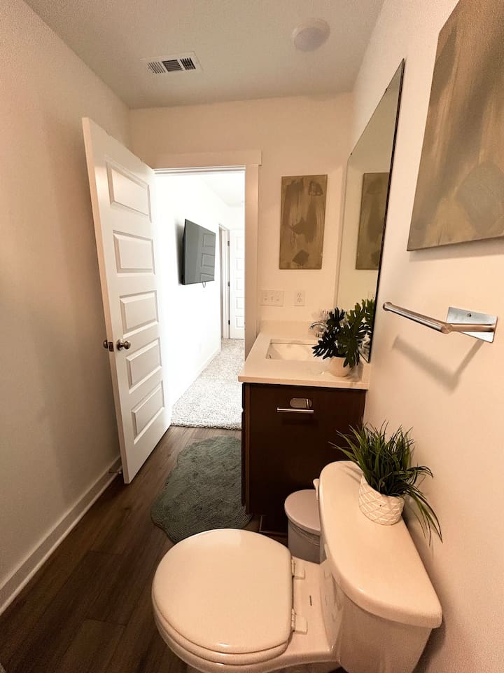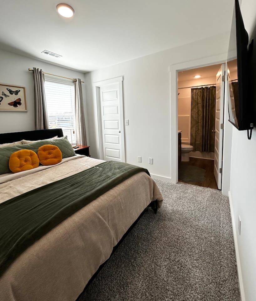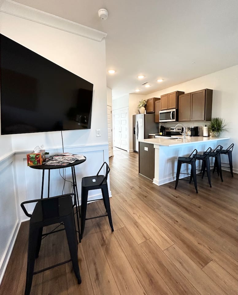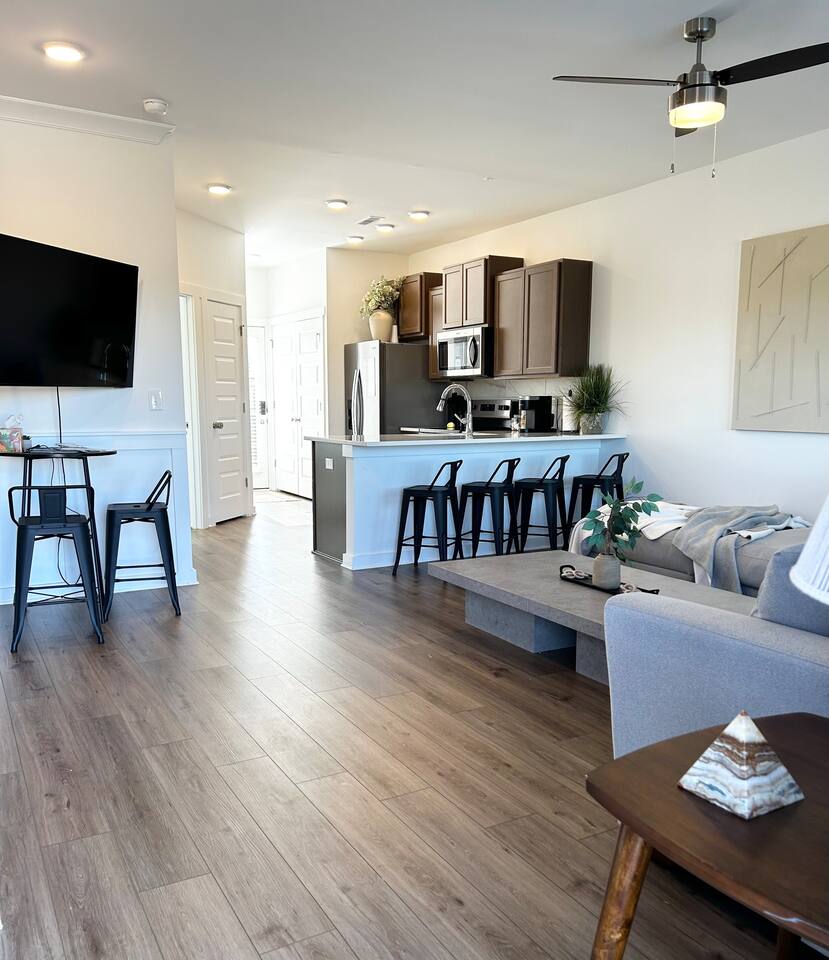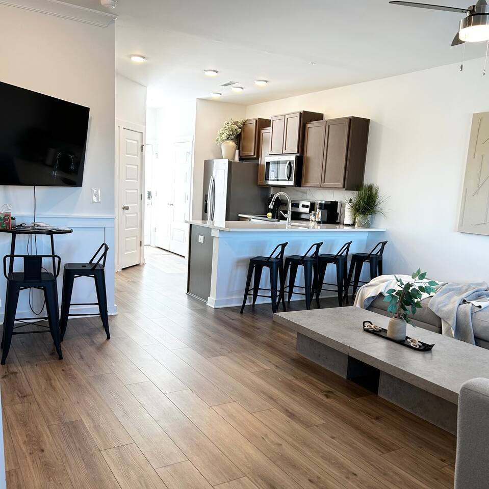 Welcome to this charming and modern smart townhome at Discovery Point in Huntsville! This beautiful property offers 3 cozy bedrooms with 2 queen, and a twin bed, ensuring everyone in your group has a restful night’s sleep. With 3 full size and fully equipped bathrooms (2 on suite), getting ready each day is a breeze. The home boasts stunning interior design paired with thoughtfully curated modern amenities to provide a welcoming and comfortable stay.