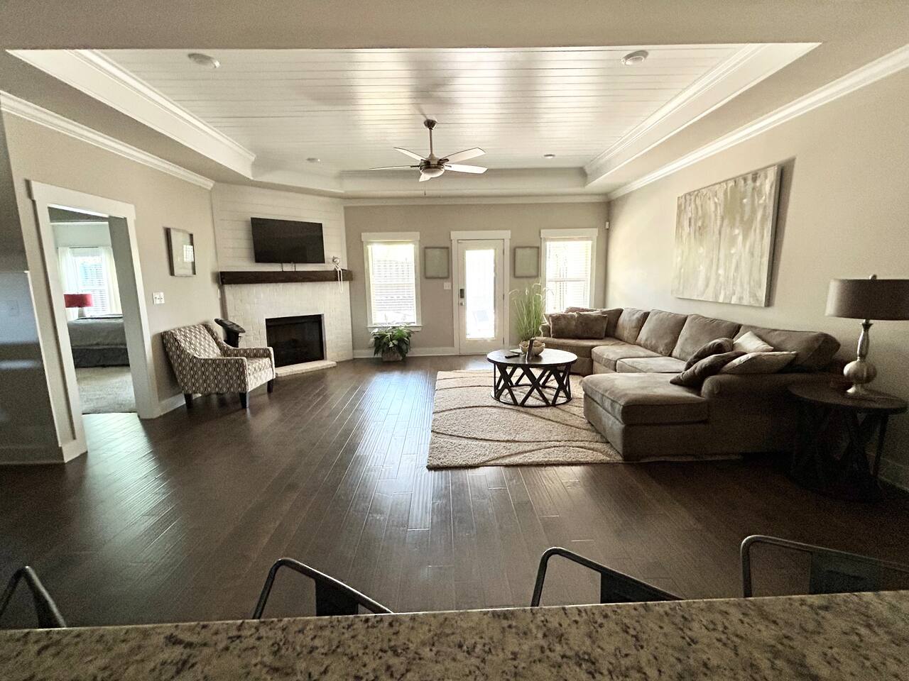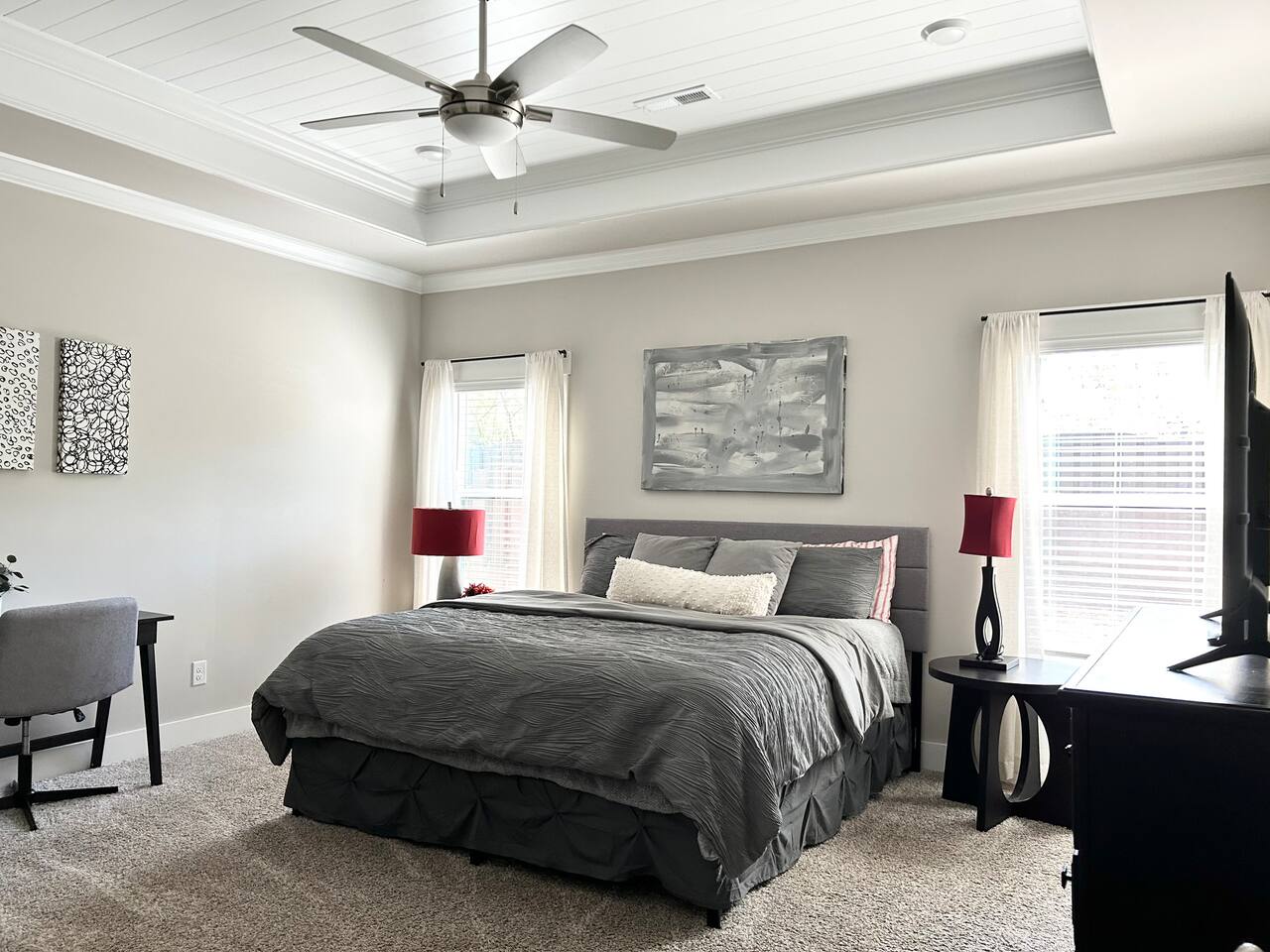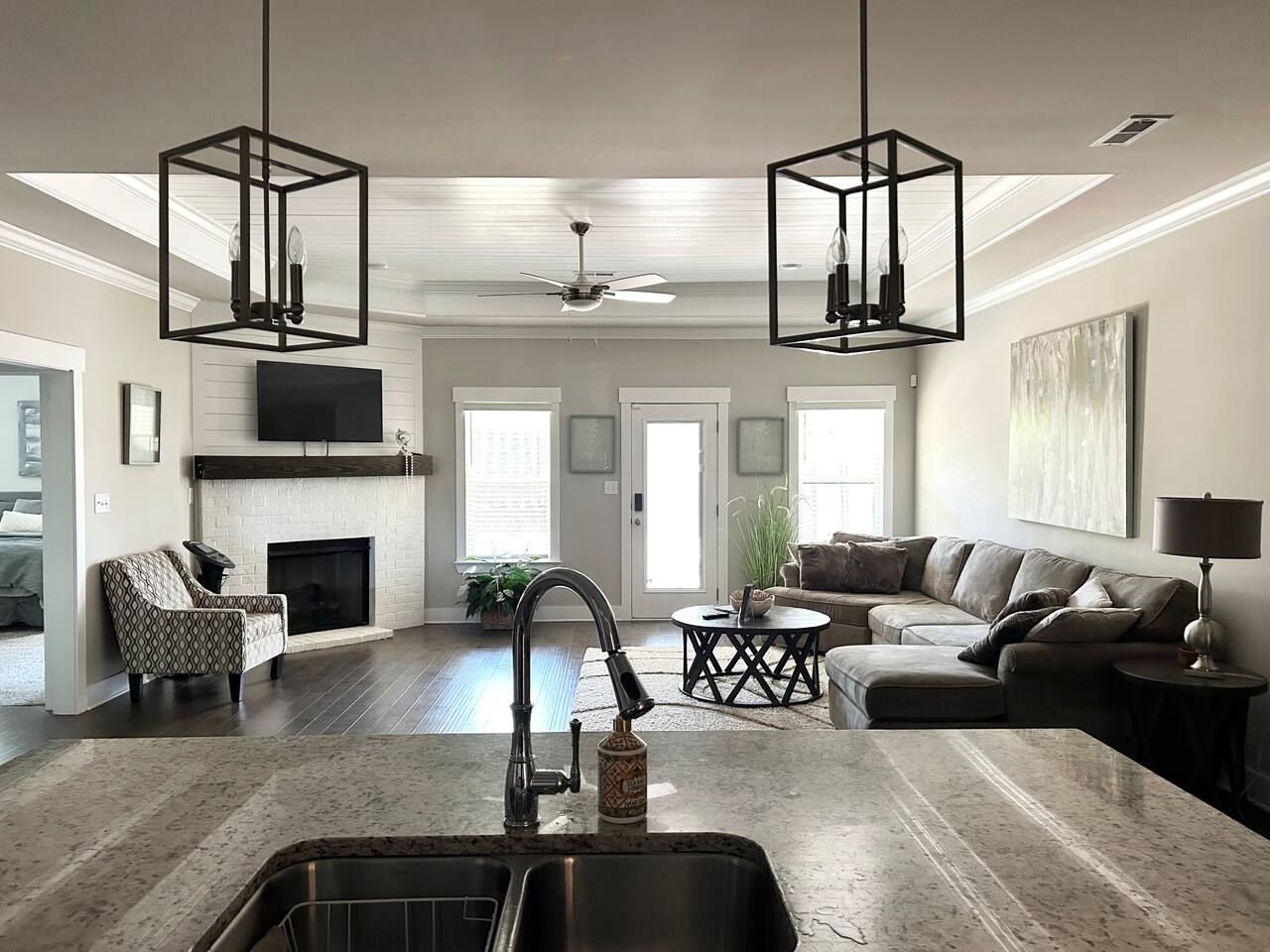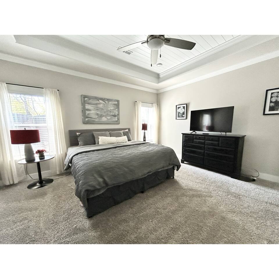 🛏️ Master Suite: Relax in a plush king bed surrounded by modern furnishings and large windows. The ensuite bathroom features a luxury spa shower and a separate soaking tub to unwind after a busy day. 🛏️ Additional Bedrooms: Two comfortable bedrooms with cozy bedding provide restful space for family or colleagues. 🍳 Kitchen: A large gourmet kitchen awaits the chef in your group, equipped with a gas cooktop, granite countertops, dishwasher, and a full array of cooking basics and appliances, including a rice maker and blender. 🛋️ Living Area: The open floor plan creates a bright and inviting space with comfortable seating, and one of four smart TVs perfect for streaming your favorite shows from your personal accounts. 💻 Workspace: Stay productive in a dedicated office corner featuring a laptop-friendly desk and high-speed ethernet for reliable connectivity. 🎲 Entertainment: Enjoy family fun with board games, puzzles, and even a karaoke machine. 🌳 Outdoor Space: Step into a fully fenced private yard with outdoor seating, perfect for al fresco dining or relaxing after a day exploring nearby walking and biking trails. 🚗 Garage & Parking: Benefit from secure 2-car garage parking and easy access to the home’s private entrance. 📍 Location: Less than 5 minutes from Redstone Arsenal Gate 7, Toyota Field, and upscale dining and shopping at Town Madison. Publix is just a short walk away for convenience. With all these comforts wrapped in a quiet, safe neighborhood, this retreat is your perfect base for family vacations, business trips, or attending local events. Book now to experience Huntsville hospitality at its best!