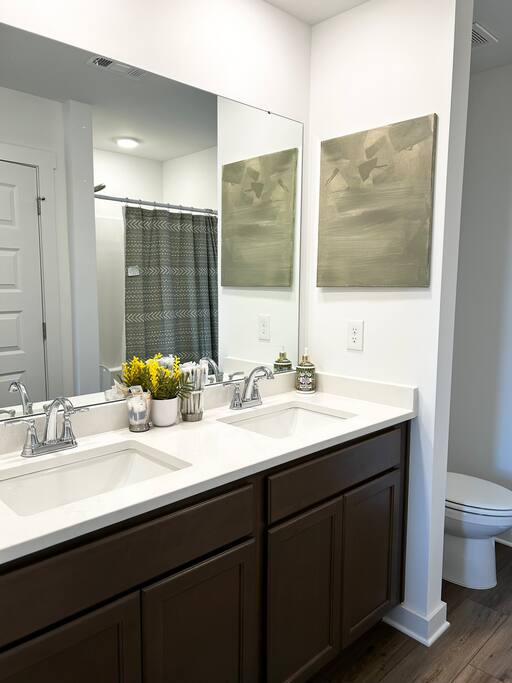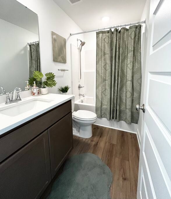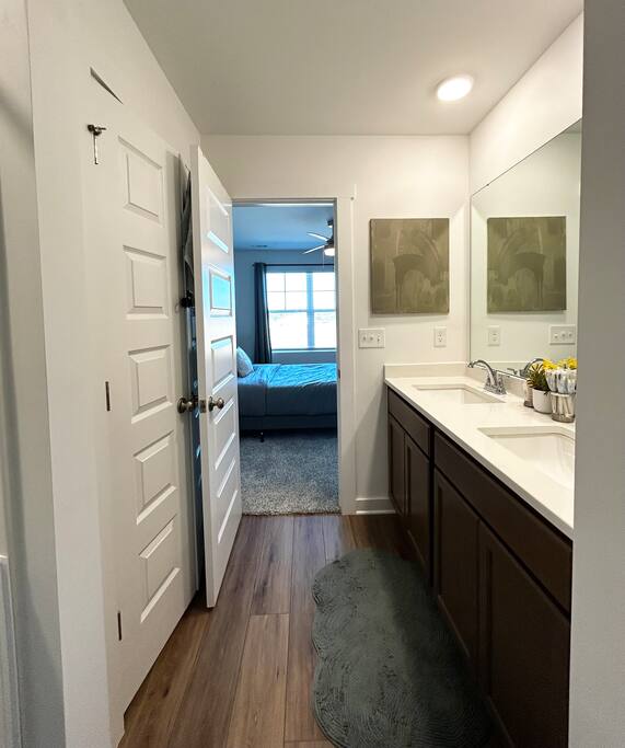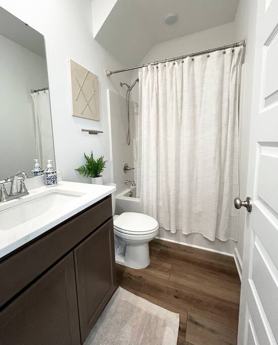 Welcome to this charming and modern smart townhome at Discovery Point in Huntsville! This beautiful property offers 3 cozy bedrooms with 2 queen, and a twin bed, ensuring everyone in your group has a restful night’s sleep. With 3 full size and fully equipped bathrooms (2 on suite), getting ready each day is a breeze. The home boasts stunning interior design paired with thoughtfully curated modern amenities to provide a welcoming and comfortable stay.